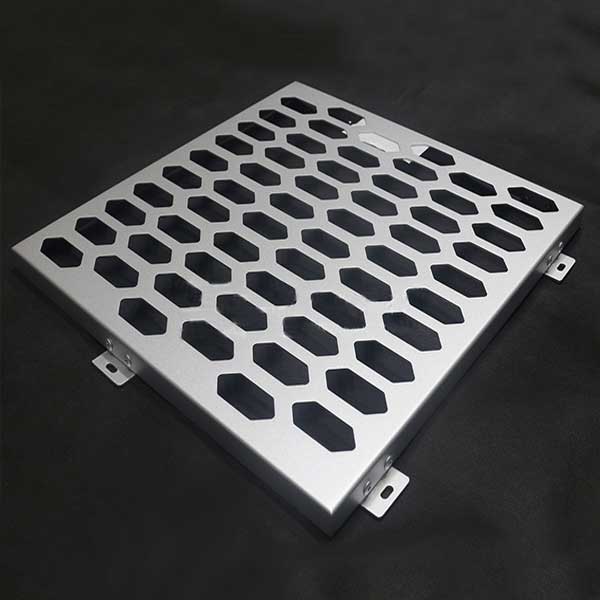 与常规铝单板相比,冲孔铝单板的特征就是表面形状各异的冲孔(包括圆孔、方孔、五角星、六边形孔等),装饰效果突出,也能够在一定程度上起到降低噪音的作用。集装饰性与实用性于一体,冲孔铝单板在工程装饰中使用的越来越多。